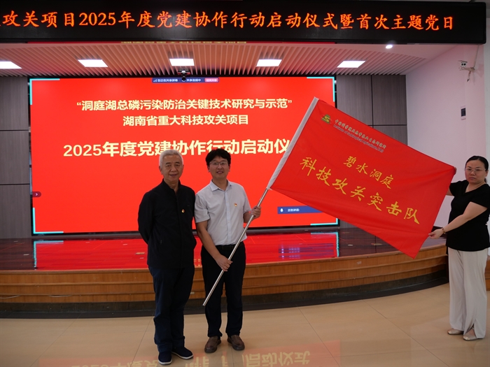 黨委書(shū)記譚支良致辭。他代表所黨委向省直機(jī)關(guān)工委的悉心指導(dǎo)和各成員單位的鼎力支持表示感謝。他指出,作為長(zhǎng)江經(jīng)濟(jì)帶生態(tài)保護(hù)的“湖南答卷”,本次黨建協(xié)作既是踐行習(xí)近平生態(tài)文明思想的生動(dòng)實(shí)踐,也是探索黨建和業(yè)務(wù)深度融合的重大創(chuàng)新。組建“碧水洞庭科技攻關(guān)突擊隊(duì)”,既能充分發(fā)揮黨員先鋒模范作用,又能助推黨建與科研深度融合。希望突擊隊(duì)成員及各成員單位牢記習(xí)近平總書(shū)記“守護(hù)好一江碧水”的囑托,以本次黨建協(xié)作為契機(jī),以“功成不必在我”的境界和“功成必定有我”的擔(dān)當(dāng),努力產(chǎn)出既有科研創(chuàng)新價(jià)值、又有社會(huì)示范意義的重大成果,用科技之筆描繪“一湖四水”的美好畫(huà)卷,為長(zhǎng)江經(jīng)濟(jì)帶高質(zhì)量發(fā)展提供強(qiáng)大科技支撐。