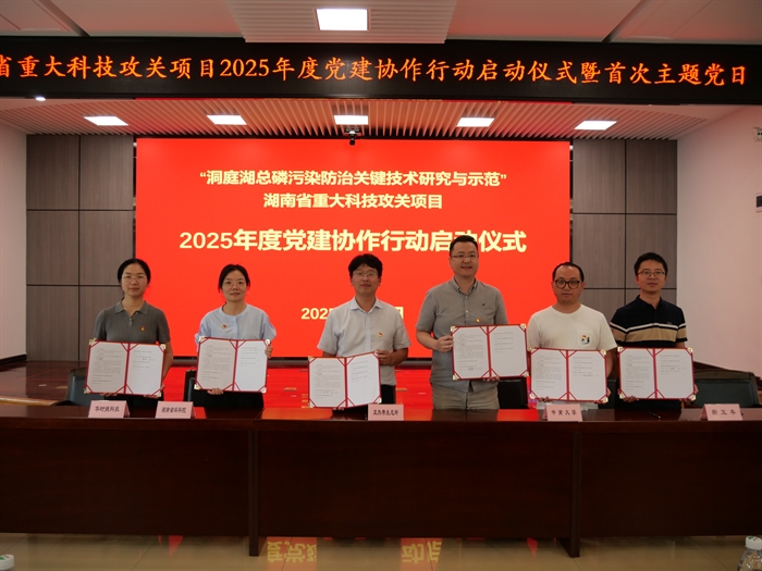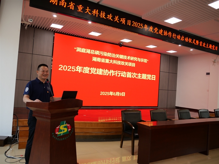 龍穩(wěn)鎧作總結(jié)講話。他指出,黨的十八大以來(lái),習(xí)近平總書(shū)記先后4次到湖南考察調(diào)研并作出重要指示,強(qiáng)調(diào)要“守護(hù)好一江碧水”“守護(hù)好三湘大地的青山綠水、藍(lán)天凈土”。圍繞“洞庭湖總磷污染防治關(guān)鍵技術(shù)研究與示范”項(xiàng)目建立黨建協(xié)作機(jī)制,對(duì)于推動(dòng)項(xiàng)目實(shí)施具有必要性和重要意義。本次活動(dòng)是落實(shí)習(xí)近平總書(shū)記重要指示批示精神的重要體現(xiàn),也是黨建與業(yè)務(wù)深度融合、黨建賦能科技攻關(guān)的創(chuàng)新實(shí)踐。希望各成員單位堅(jiān)持以黨建為引領(lǐng),強(qiáng)化政治建設(shè),堅(jiān)持以目標(biāo)為導(dǎo)向,推動(dòng)科技攻關(guān),堅(jiān)持以協(xié)作為牽引,實(shí)現(xiàn)多方共贏,為協(xié)調(diào)統(tǒng)籌國(guó)家糧食安全和湖泊水生態(tài)安全,守護(hù)好“一江碧水”及洞庭湖總磷攻堅(jiān)戰(zhàn)的實(shí)施提供強(qiáng)大科技支撐。