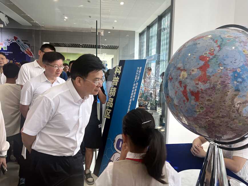 中國科學(xué)院廣州地球化學(xué)研究所則是帶來了最新的“地質(zhì)月球儀”和中國探月工程(嫦娥工程)的發(fā)展歷程以及嫦娥工程帶回了的月壤樣品取得的最新科研成果等行星科學(xué)科普知識(shí),吸引了大批青少年及市民駐足參觀。