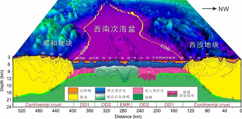 近日,中國科學(xué)院南海海洋研究所邊緣海與大洋地質(zhì)實驗室(OMG)趙明輝研究員團隊聯(lián)合廣州海洋地質(zhì)調(diào)查局、德國GEOMAR亥姆霍茲基爾海洋研究中心等國內(nèi)外單位,在南海西南次海盆深部結(jié)構(gòu)研究中取得突破性進展。相關(guān)成果發(fā)表在國際地學(xué)期刊Journal of Geophysical Research: Solid Earth《地球物理研究雜志-固體地球》上,南海海洋所副研究員張佳政為論文第一作者,德國GEOMAR亥姆霍茲基爾海洋研究中心博士后黎雨晗、廣州海洋地質(zhì)調(diào)查局教授級高工姚永堅為共同通訊作者。