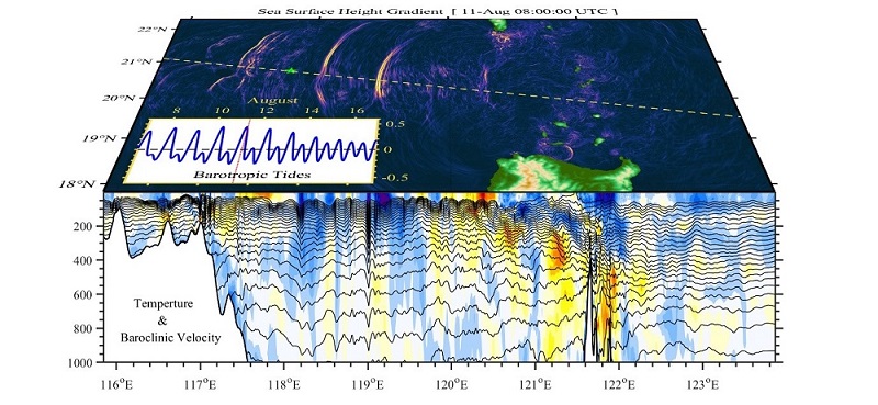 南海北部?jī)?nèi)孤立波主要是由來(lái)自太平洋的潮流通過(guò)呂宋海峽水下陡峭的海脊所激發(fā)產(chǎn)生的一種大振幅強(qiáng)非線性內(nèi)波,對(duì)海洋混合、生態(tài)環(huán)境、海洋工程及水下航行安全等具有重要影響。受南海北部復(fù)雜地形和背景環(huán)流影響,如何精確預(yù)報(bào)內(nèi)孤立波的生成傳播演變規(guī)律具有很大的挑戰(zhàn)性。