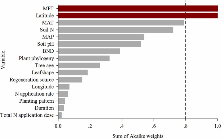 圖1. 氮沉降對植物生物量CperN影響因子的重要性