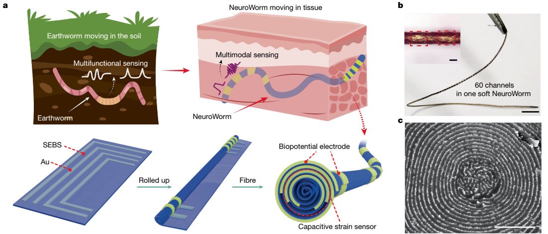 9月17日,由中國(guó)科學(xué)院深圳先進(jìn)技術(shù)研究院劉志遠(yuǎn)、韓飛團(tuán)隊(duì)聯(lián)合徐天添團(tuán)隊(duì),以及東華大學(xué)嚴(yán)威團(tuán)隊(duì),歷經(jīng)5年多協(xié)同攻關(guān)的研究成果在《自然》發(fā)表。研究團(tuán)隊(duì)成功研發(fā)出了如頭發(fā)絲般纖細(xì)、柔軟可拉伸、可自由驅(qū)動(dòng)的神經(jīng)纖維電極——NeuroWorm(神經(jīng)蠕蟲(chóng))。該研究首次提出了腦機(jī)接口“動(dòng)態(tài)電極”的新范式,打破了植入式電極的“靜態(tài)”傳統(tǒng),為腦機(jī)接口電極的研究與應(yīng)用開(kāi)辟了新方向。