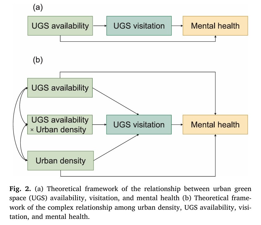 心理健康已成為全球性重大挑戰(zhàn),占全球威脅生命疾病總數(shù)的32%,并且世界衛(wèi)生組織研究表明COVID-19大流行導(dǎo)致全球焦慮癥和抑郁癥患病率上升25%。尤其是城市地區(qū)的居民心理健康面臨更大風(fēng)險(xiǎn),通常與城市復(fù)雜環(huán)境多因素密切關(guān)聯(lián),例如環(huán)境污染、孤獨(dú)感、壓力以及城市綠色空間的匱乏等。心理健康通常會(huì)受到個(gè)體特征、社會(huì)關(guān)系和社會(huì)經(jīng)濟(jì)地位等多維因素的影響,因此建成區(qū)環(huán)境對(duì)居民心理健康的影響日益受到關(guān)注。城市密度作為建成區(qū)環(huán)境的核心要素,目前其對(duì)心理健康的影響仍存在爭(zhēng)議,主要由兩方面可能原因?qū)е?,一是以往研究往往忽略了兩者關(guān)聯(lián)的具體路徑與交互作用,二是影響機(jī)制會(huì)因當(dāng)?shù)乇尘安煌嬖诓町?。城市的密集開(kāi)發(fā)可能后果是導(dǎo)致綠色空間減少,對(duì)心理健康造成不利影響,但相反,高密度城市又會(huì)伴隨帶來(lái)高效的交通系統(tǒng)和適宜步行的有利環(huán)境。然而,總體來(lái)講,城市密度、城市綠色空間暴露以及心理健康三者之間的復(fù)雜關(guān)系仍未形成一個(gè)統(tǒng)一的關(guān)聯(lián)框架。理解其關(guān)系有助于增強(qiáng)我們對(duì)于高密度城市開(kāi)發(fā)如何影響心理健康的認(rèn)知,并為城市綠地規(guī)劃提供更科學(xué)的決策依據(jù)。