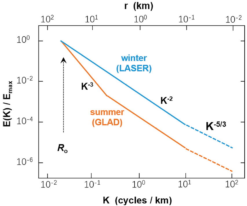 圖1?基于漂流浮標(biāo)觀測(cè)數(shù)據(jù)推斷的海洋動(dòng)能譜特征。