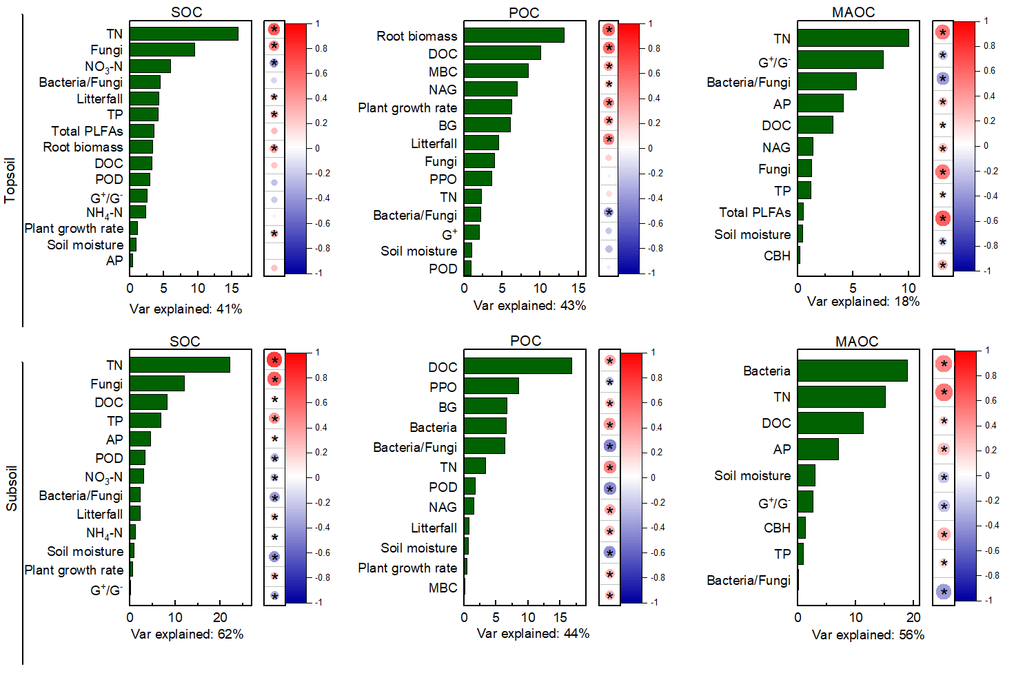圖2. 生物與非生物因子對土壤有機碳及其組分的影響