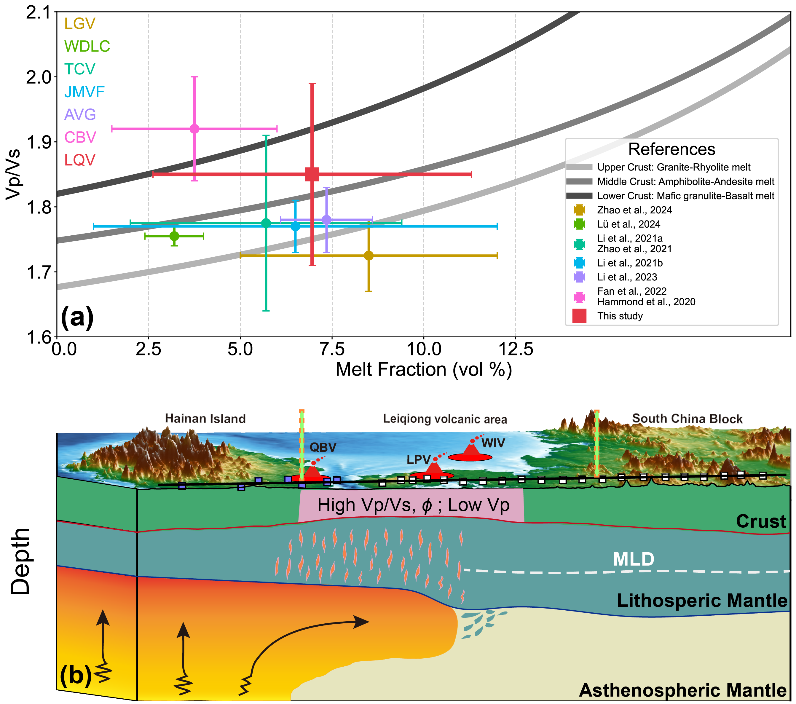 ?Zhang,Z. (張周),Deng,Y. *(鄧陽凡),Xu,Y.-G. (徐義剛),Li,X. (李鑫),& Zhang,J.(張錦昌),2025,Seismological evidence for crustal thinning and melting beneath the Leiqiong volcanic area,South China: implications for plume-lithosphere interaction at a passive continental margin,Geophysical Research Letters,52,e2025GL115307.