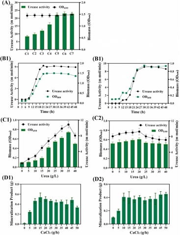 圖2. 本土礦化菌菌株的馴化過程和最佳培養(yǎng)條件篩選