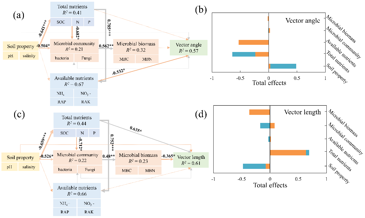 圖3.?土壤性質(zhì)、土壤養(yǎng)分以及微生物性質(zhì)對(duì)微生物養(yǎng)分限制的主要影響途徑
