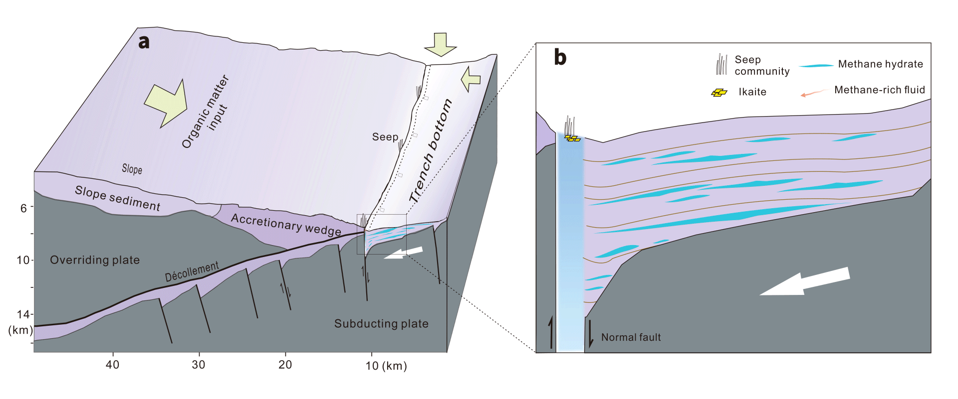 該研究對理解地球深部碳循環(huán)具有深遠(yuǎn)意義。通過地球化學(xué)分析,研究人員發(fā)現(xiàn)這些環(huán)境中的甲烷實際上是由沉積層深處的微生物活動產(chǎn)生的。這一結(jié)果表明,在深淵海底之下還存在著一個前所未知的、龐大活躍的深部生物圏,不斷將由沉降有機質(zhì)分解而來的二氧化碳轉(zhuǎn)化為甲烷。因此,這一過程可能封存了大量的從上層海洋沉降的有機碳,并以天然氣水合物等形式在深淵海底形成規(guī)模巨大的甲烷儲庫,挑戰(zhàn)了傳統(tǒng)的深海碳循環(huán)和碳收支模式。