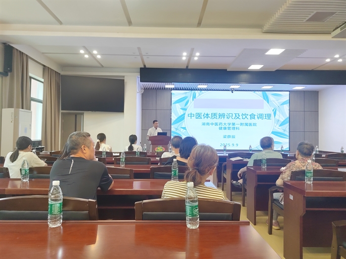 本次活動邀請湖南中醫(yī)藥大學(xué)第一附屬醫(yī)院譚朝堅教授專家團(tuán)隊現(xiàn)場授課。主治醫(yī)師梁薛辰作《中醫(yī)體質(zhì)辨識及飲食調(diào)理》專題報告,對研究所本年度職工團(tuán)體體檢的整體情況進(jìn)行總結(jié)分析,并系統(tǒng)講解中醫(yī)九種體質(zhì)類型的特征及辨識方法,針對不同體質(zhì)提出相應(yīng)的飲食調(diào)養(yǎng)、運動保健和生活作息建議,讓大家了解自身體質(zhì)特點,掌握科學(xué)養(yǎng)生方法。