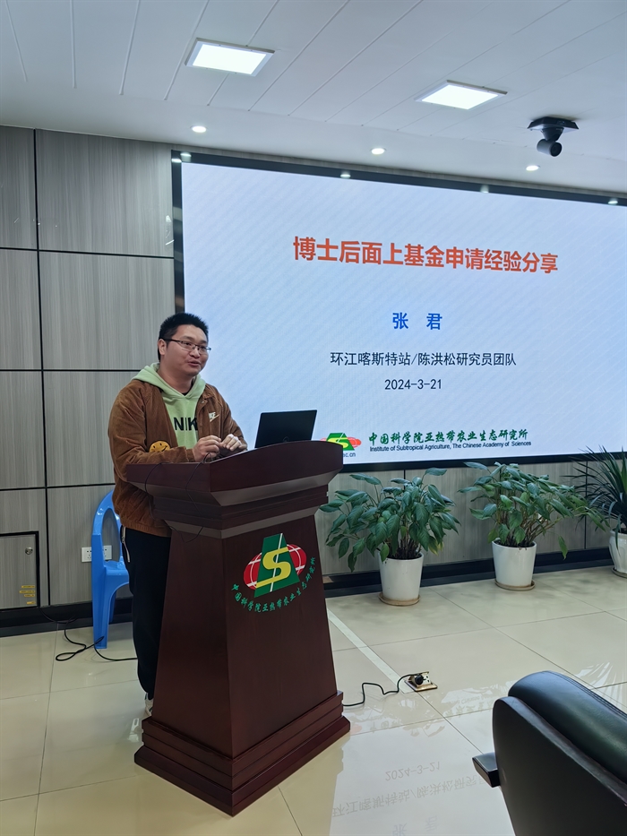 3月21日,中國(guó)科學(xué)院亞熱帶農(nóng)業(yè)生態(tài)研究所召開(kāi)博士后基金項(xiàng)目申報(bào)經(jīng)驗(yàn)交流會(huì),在站博士后及部分在讀高年級(jí)博士生參加。本次活動(dòng)由人事教育處和博士后聯(lián)誼會(huì)聯(lián)合舉辦。