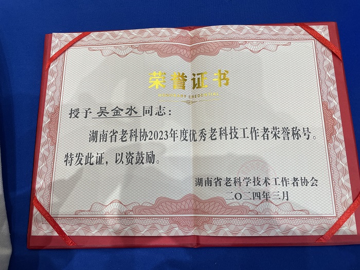 會上表彰了湖南省老科協(xié)2023年度先進集體和先進個人,中國科學院亞熱帶農(nóng)業(yè)生態(tài)研究所吳金水研究員榮獲湖南省老科協(xié)“2023年度老科技工作者”獎。
