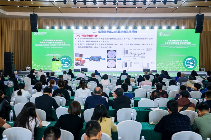 為了應(yīng)對(duì)日益嚴(yán)重的抗微生物藥物耐藥性問題,F(xiàn)AO發(fā)起了為期十年“減少農(nóng)場(chǎng)抗微生物藥物需求,推動(dòng)農(nóng)業(yè)糧食體系可持續(xù)轉(zhuǎn)型”(RENOFARM)的全球倡議。本次國(guó)際研討會(huì)緊緊圍繞“RENOFARM”這一主題,共設(shè)置了3場(chǎng)主題演講、25場(chǎng)專題報(bào)告和5場(chǎng)學(xué)術(shù)討論。各方與會(huì)人員聚焦“替抗”“減抗”等專題分享了各自的理念和實(shí)踐經(jīng)驗(yàn),并在抗微生物藥物減量化方面達(dá)成全球共識(shí)。