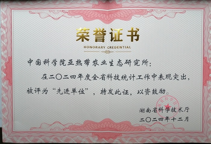 12月27日,湖南省科學(xué)技術(shù)廳召開了2024年度全省科技統(tǒng)計(jì)工作會(huì)議暨第6期科技創(chuàng)新大講堂。會(huì)議總結(jié)了2024年科技統(tǒng)計(jì)工作與創(chuàng)新調(diào)查工作,表彰了全省科技統(tǒng)計(jì)工作成效突出的單位。中國科學(xué)院亞熱帶農(nóng)業(yè)生態(tài)研究所被評(píng)為“2024年度科技統(tǒng)計(jì)工作先進(jìn)單位”。